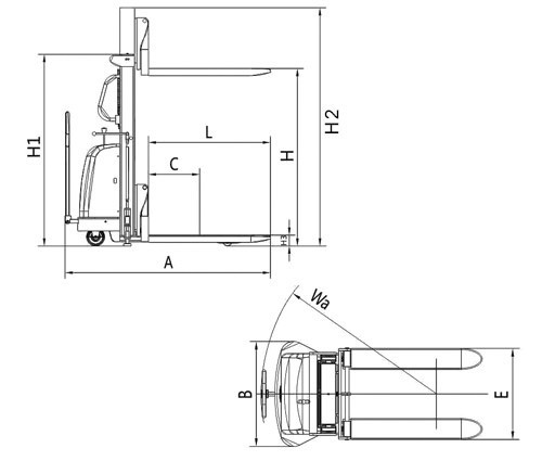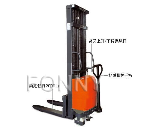 • 具有裝卸和短距離運輸貨物功能的兩用半電動堆高車;